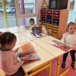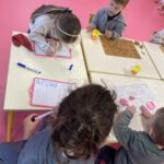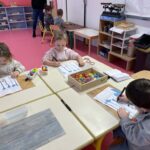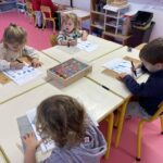 GS : écrire le B et le S, faire des petites soustractions, associer des mots en capitales et en scriptes, retrouver des sons dans des mots (g, k, p, t), écrire les chiffres dans le bon sens, reconnaitre les alphas en les touchant…