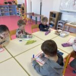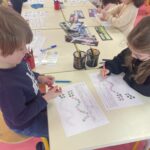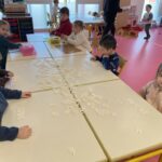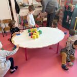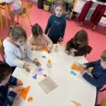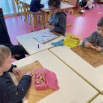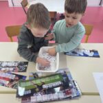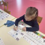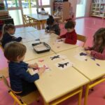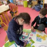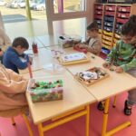 GS : revoir les lettres d, t, p et q en écriture cursive, compléter des collections pour arriver à une quantité donnée, écrire des mots de deux ou trois sons, trouver un mot avec une consonne longue au milieu (m, f, j, r), nommer les ustensiles utilisés dans une cuisine, réaliser des tangrams, repérer la droite et la gauche…