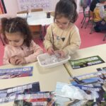 PS : écrire son prénom avec les lettres mobiles, comparer la taille de deux objets, tracer des traits verticaux, faire des colliers de perles…